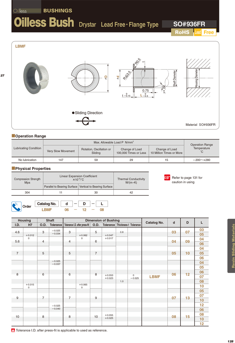 [LBM]Oilless Bush Drystar Lead Free.Straight Type