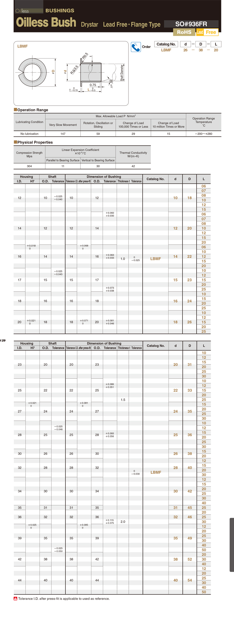 [LBMF]Oilless Bush Drystar Lead Free.Flange Type