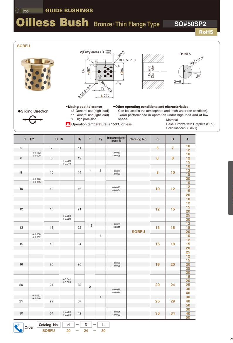 [SOBFU]Oilless Bush Bronze .Thin Flange Type