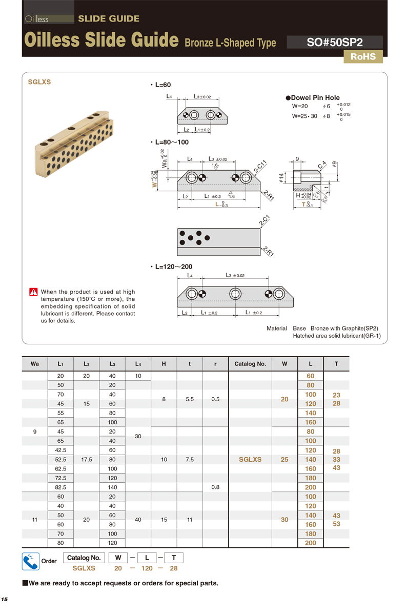 [SGLDW]Guide Rail Oilless,Copper Alliy,L-shaped Type