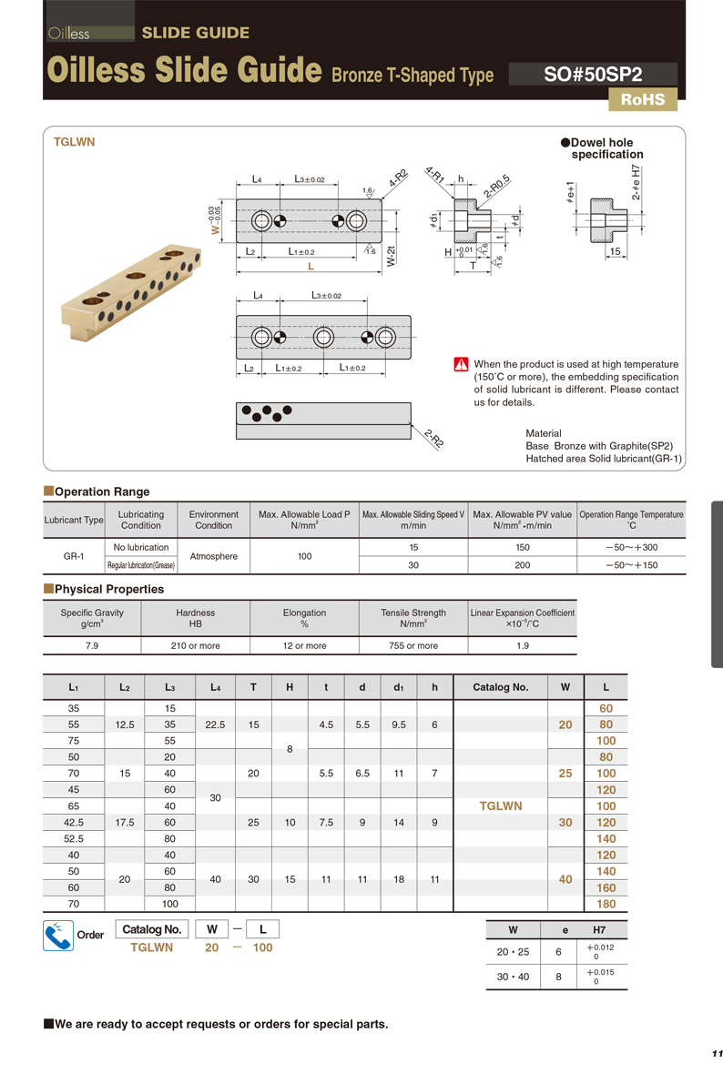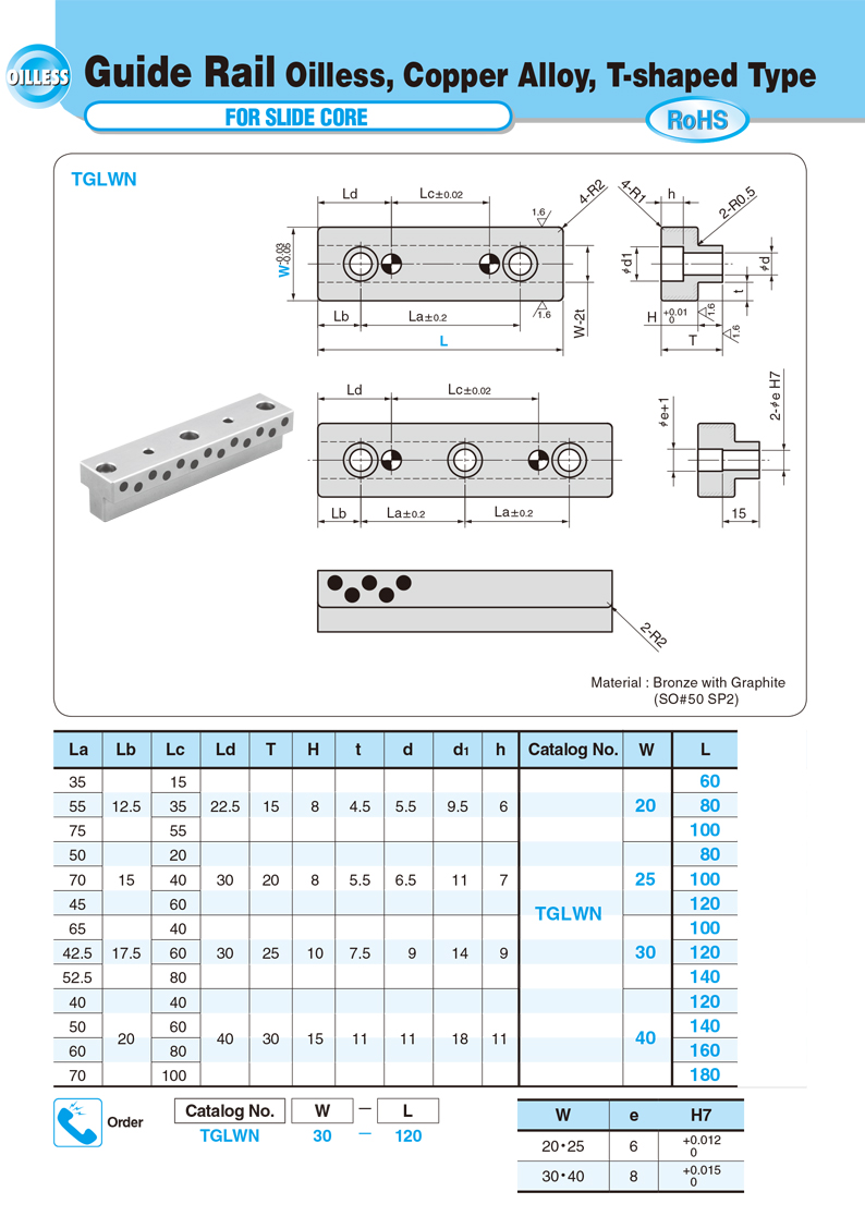 [TGLWN]Guide Rail Oilless,Copper Alloy,T-shaped Type