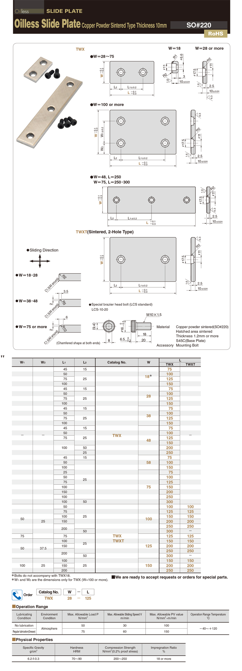 [TWX,TWXT]Oilles Slide Plate Copper Sintered Type Thickness 100mm
