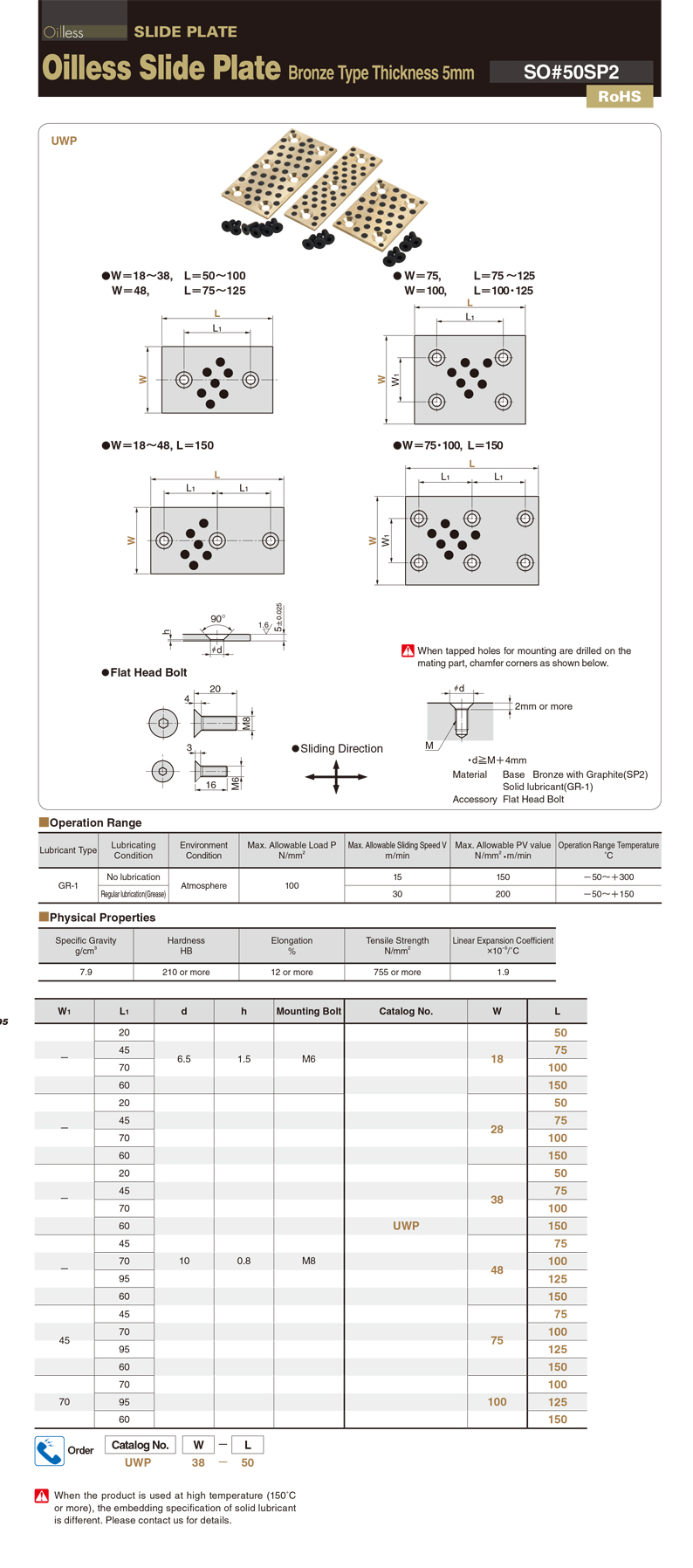 [UWP]Oilless Slide Plate Bronze Type Thickness 5mm